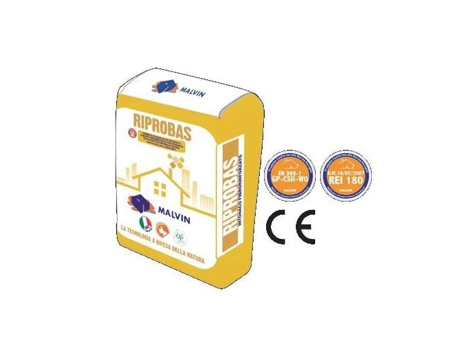 RIPROBAS è una malta premiscelata fibrorinforzata con una speciale composizione di fibre in polipropilene appositamente studiata a base di calce naturale e cemento grigio, per intonaci di sottofondo interni ed esterni, ad elevato e costante livello qualitativo, prodotto con impianto computerizzato, da applicare direttamente su qualsiasi superficie interna ed esterna di edifici vecchi e nuovi quali laterizio, laterocemento, vecchie murature, calcestruzzo, cemento armato, solai in laterizio armato, ecc, mediante applicazione con intonacatrice o a mano.