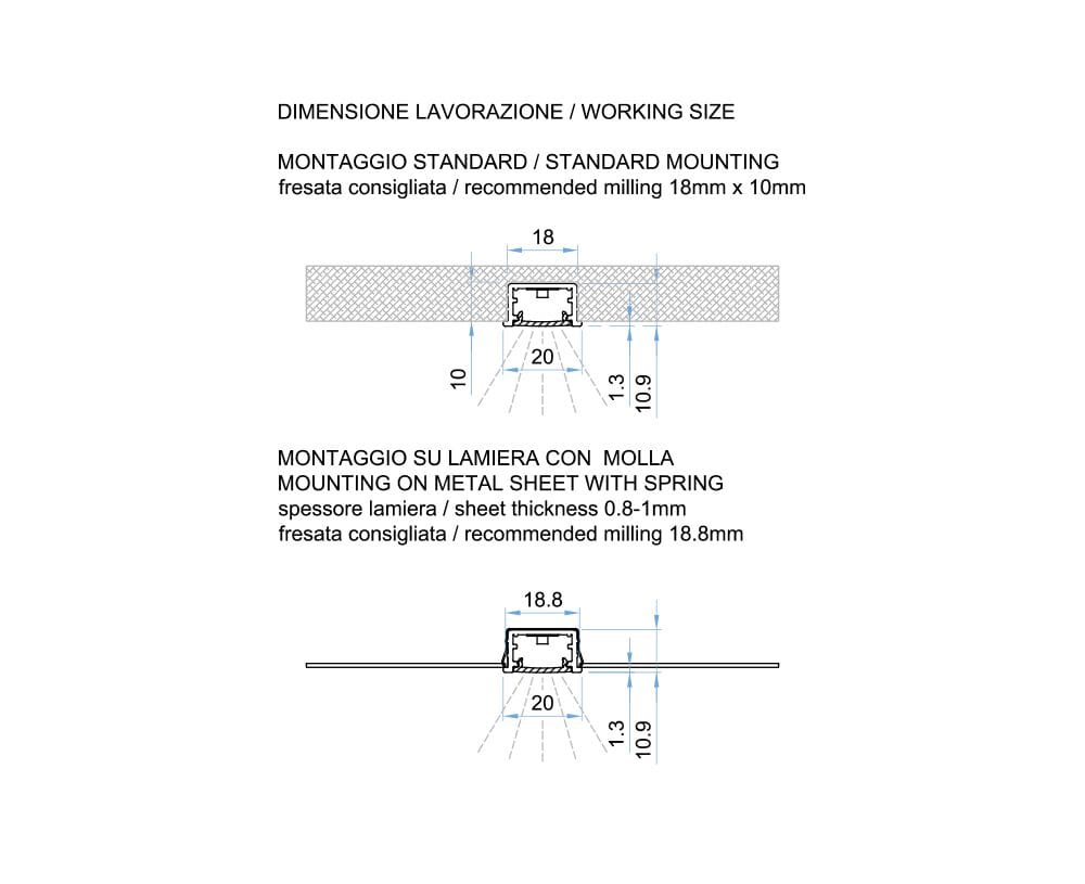 DIXI è un profilo per illuminazione lineare ad incasso, realizzato in alluminio.