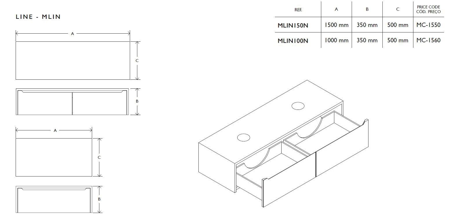 MIMIC LINE Mobile lavabo sospeso con cassetti