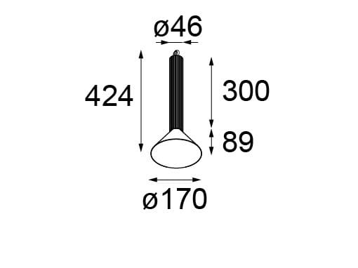 L'apparecchio viene fornito con un cavo di alimentazione nero opaco di 2 metri e deve essere abbinato al kit di sospensione richiesto. I kit di sospensione offrono diverse possibilità di montaggio: a semi-incasso o in superficie e sono disponibili con o senza driver LED integrato. Il kit di sospensione contiene un cavo d'acciaio di 2 metri che viene agganciato al gancio sul retro del tubo. Il cavo d'acciaio può essere regolato in base alle esigenze di altezza.