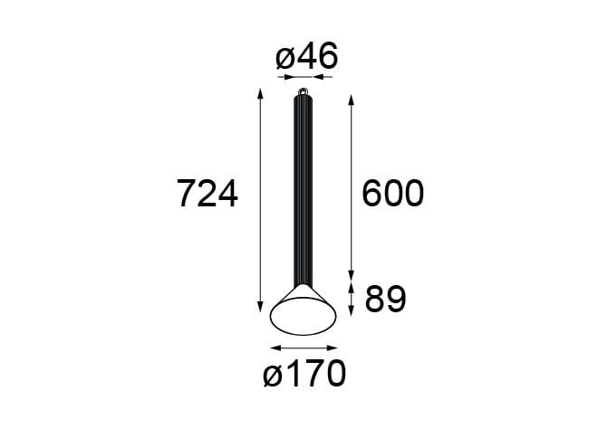 L'apparecchio viene fornito con un cavo di alimentazione nero opaco di 2 metri e deve essere abbinato al kit di sospensione richiesto. I kit di sospensione offrono diverse possibilità di montaggio: a semi-incasso o in superficie e sono disponibili con o senza driver LED integrato. Il kit di sospensione contiene un cavo d'acciaio di 2 metri che viene agganciato al gancio sul retro del tubo. Il cavo d'acciaio può essere regolato in base alle esigenze di altezza.