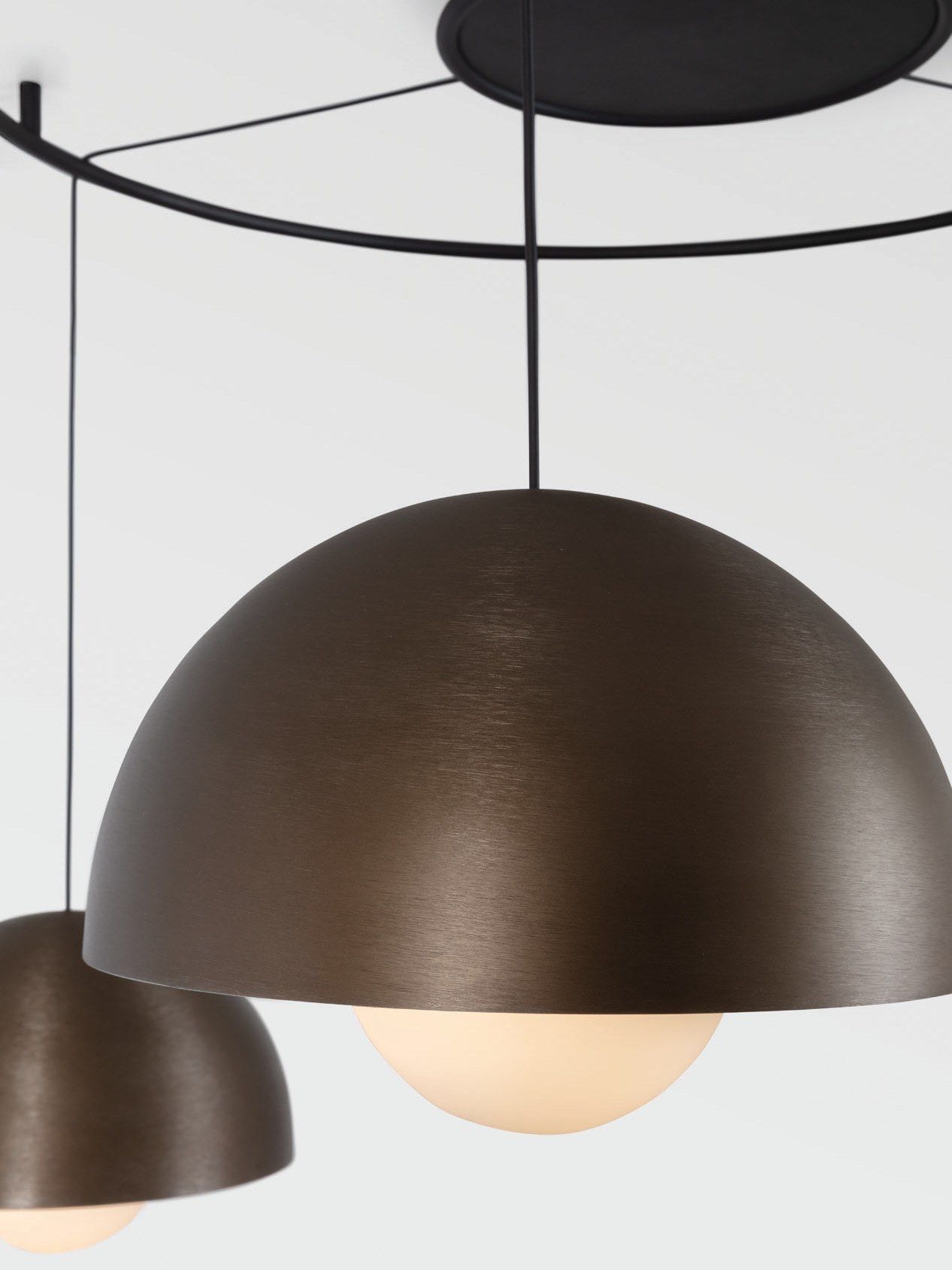 KOMPAS è una base a soffitto, realizzata per darti un anello di possibilità. Usa i suoi punti di connessione per aggiungere pendenti. Mantienilo sottile con pochi o scegli una combinazione - osiamo dire fino a 12? Posizionali come preferisci, attorno al bordo della base. Il risultato sarà un lampadario davvero unico e giocoso.