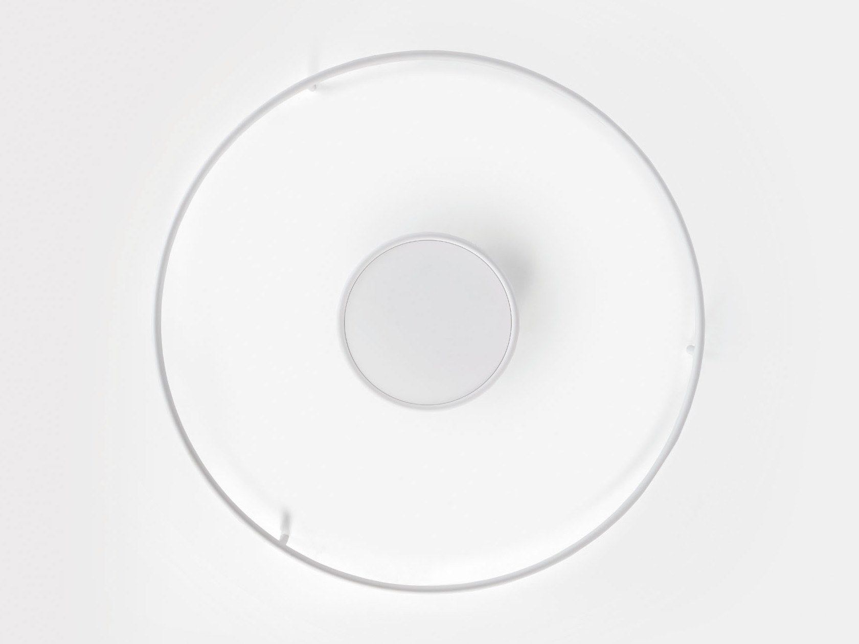 Il supporto da soffitto in alluminio HOOLAHOOP Ø1000 è da installare con gli elementi KOMPAS (non inclusi) e fa parte della collezione disegnata da Jeffrey Huyghe per Modular Lighting.