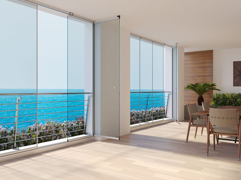 Mv Line BRILLANTE ST Vetrata scorrevole impacchettabile in alluminio-vetro Linea Vetrate panoramiche / Paravento
