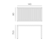 Dotato di piedini regolabili, il tavolo Cube 140x80 ha una struttura in alluminio verniciato con gambe a base quadrata. Cube 140x80 misura 75,5 cm in altezza, 140 cm in larghezza e 80 cm in profondità.