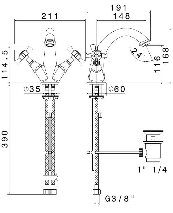 Art. 69025 - Gruppo lavabo monoforo con scarico da 1” 1/4.