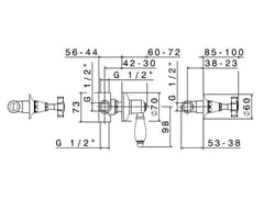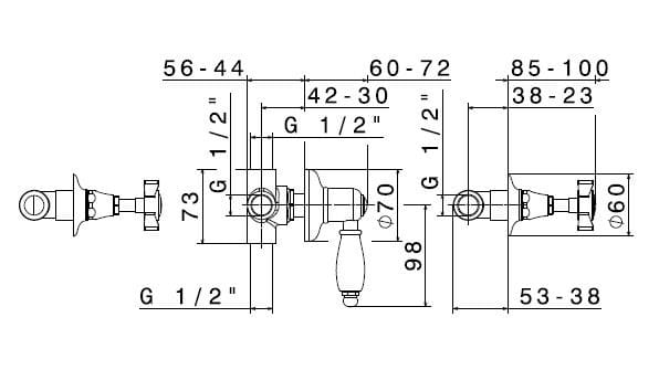 Art. 69044 - Gruppo doccia con rubinetti ad incasso, attacchi da 1/2’’ e deviatore a 2 entrate e 3 uscite.