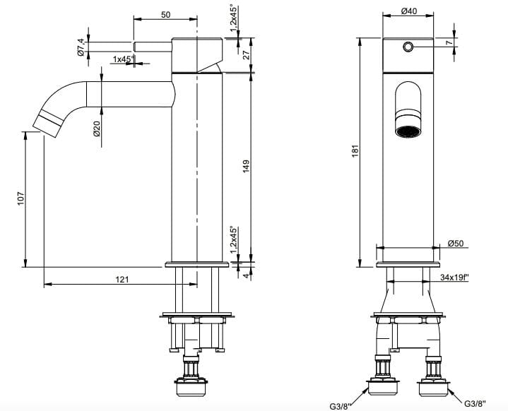 Made è un miscelatore lavabo ø40 mm inox 316L s/scarico.