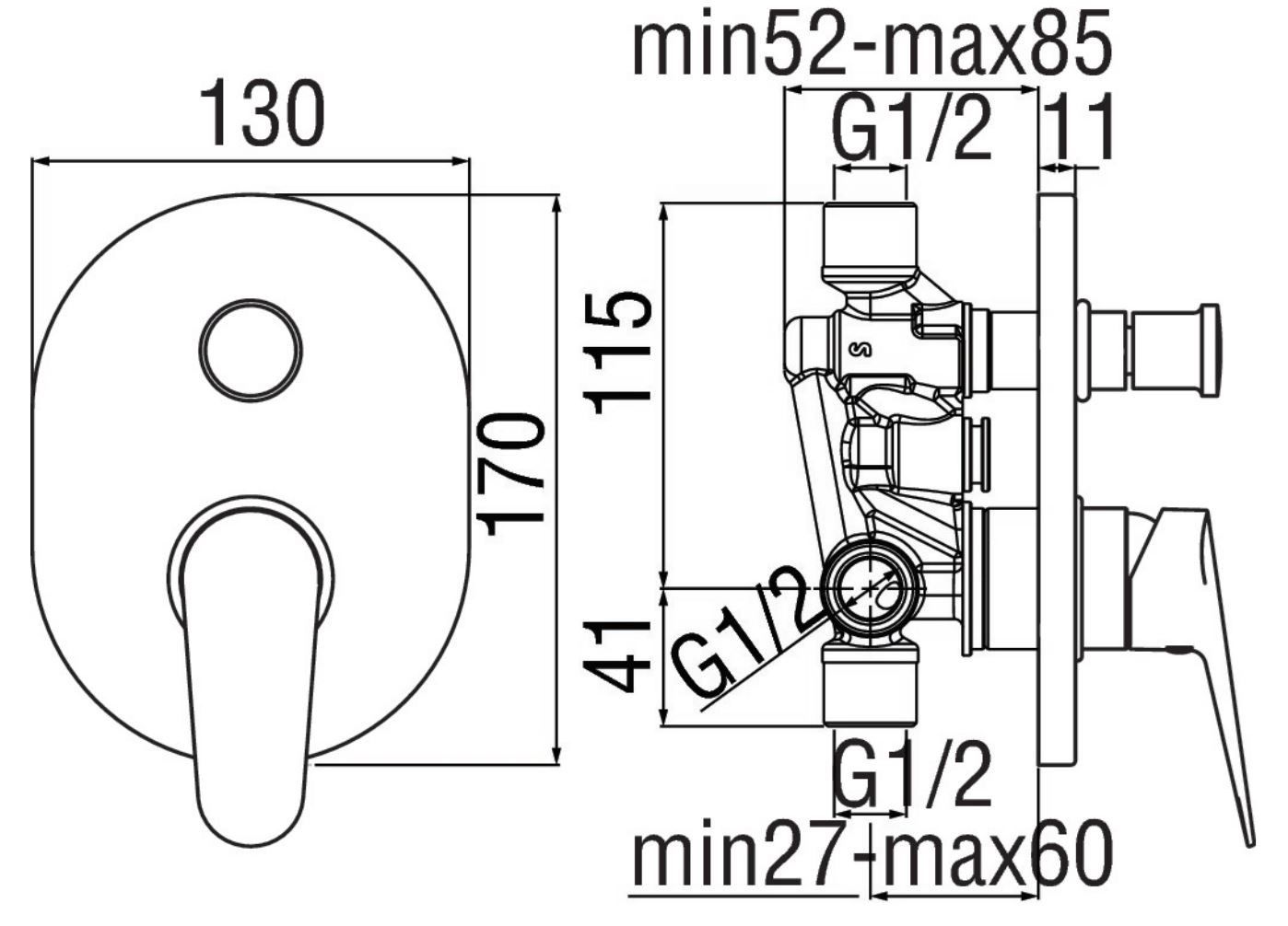 • Ingresso acqua calda e acqua fredda ø 1/2”