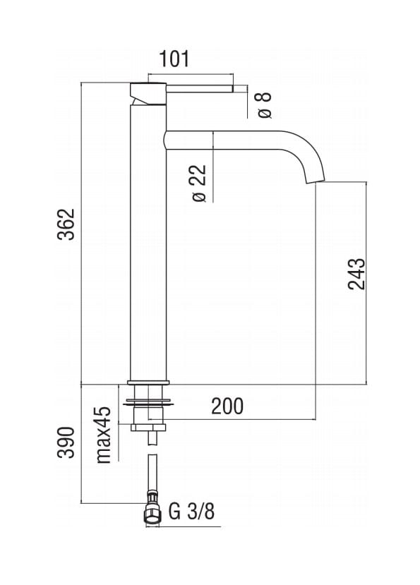 LV00128CR - Miscelatore per lavabo alto, cromo.
