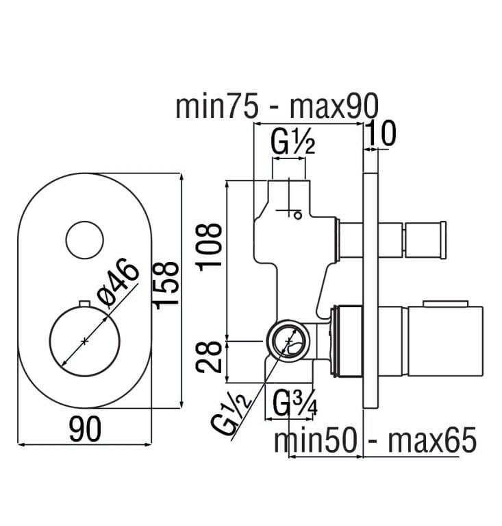 LK00100CR - Miscelatore per doccia da incasso con deviazione Likid cromo.