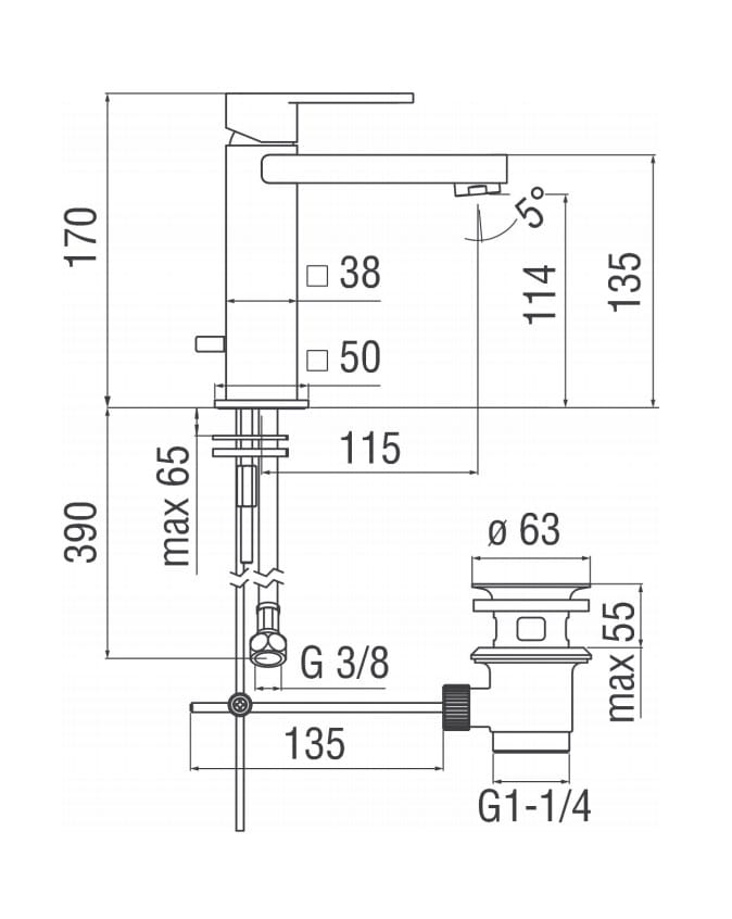 LP90118/1CR - Miscelatore monocomando lavabo bocca a cascata sc. 1"1/4 serie Loop cromo.