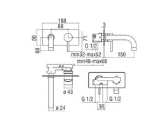 LV00198CR - Miscelatore monocomando per lavabo a parete da incasso; bocca da 150 mm con piastra; cromo.