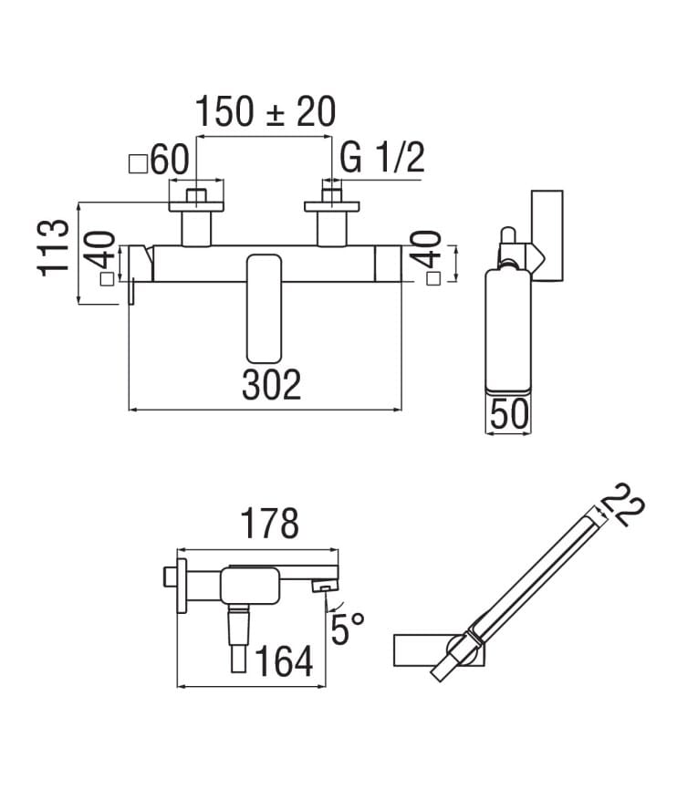 LP90110CR - Miscelatore monocomando gruppo vasca c/duplex serie Loop cromo.