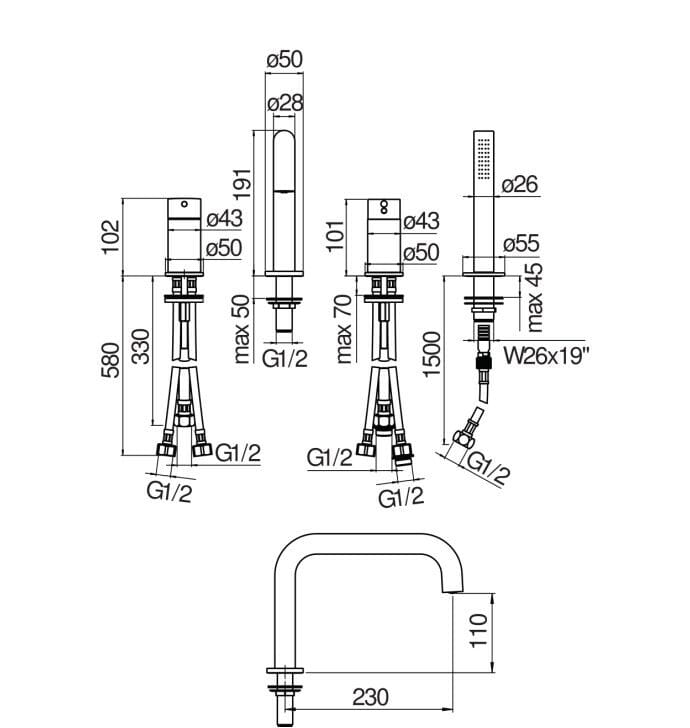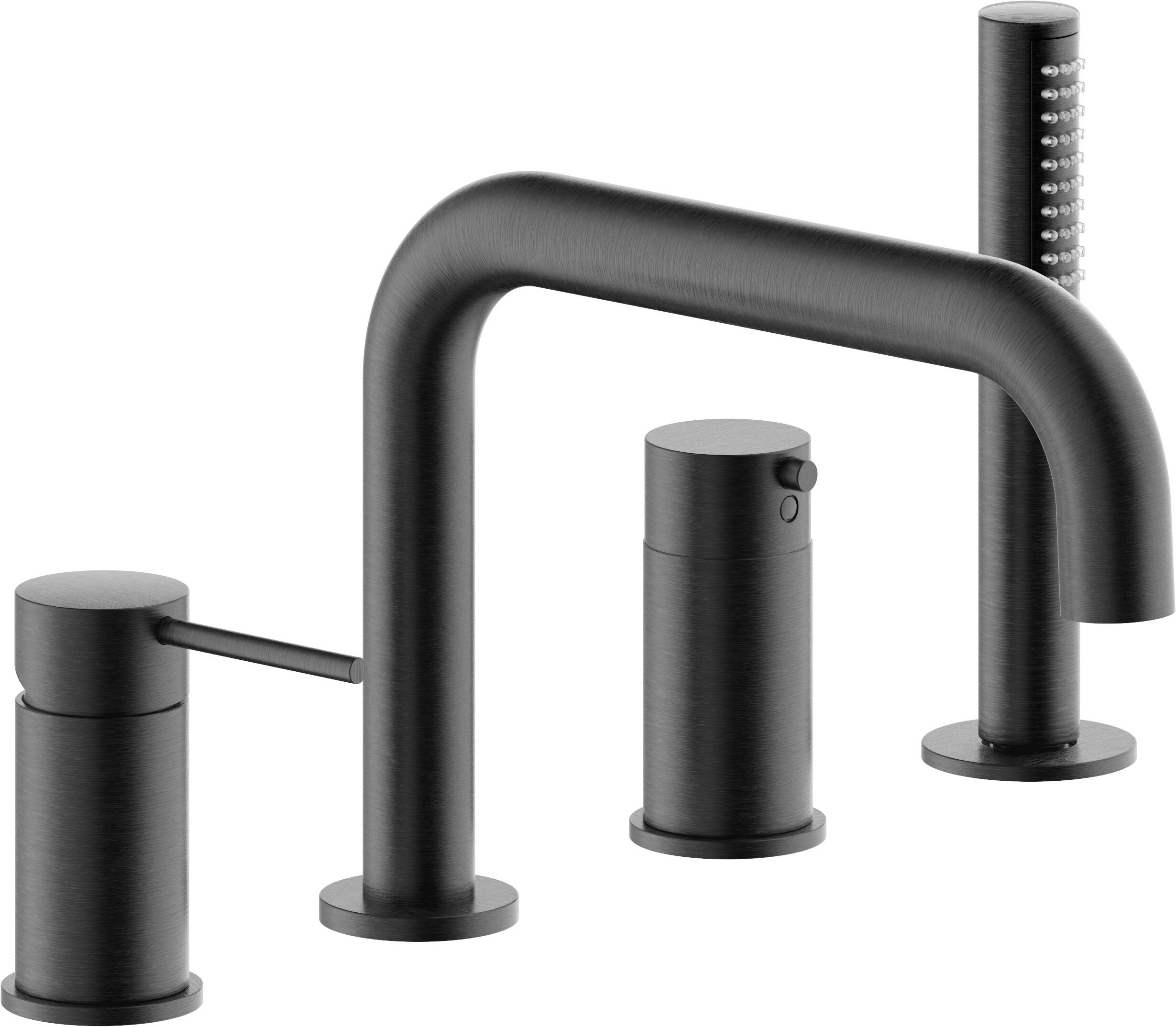 Velis è un rubinetto bordo vasca monocomando con doccetta.