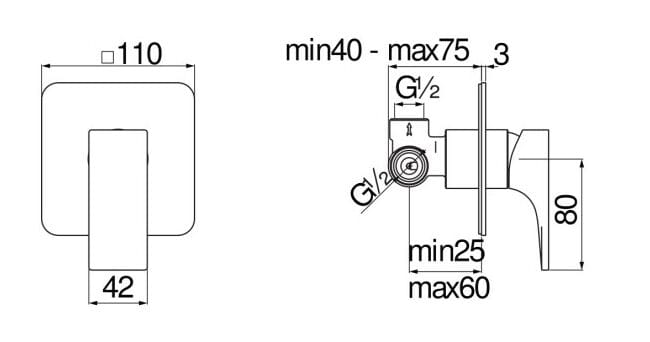 Ingresso acqua calda e acqua fredda ø 1/2”