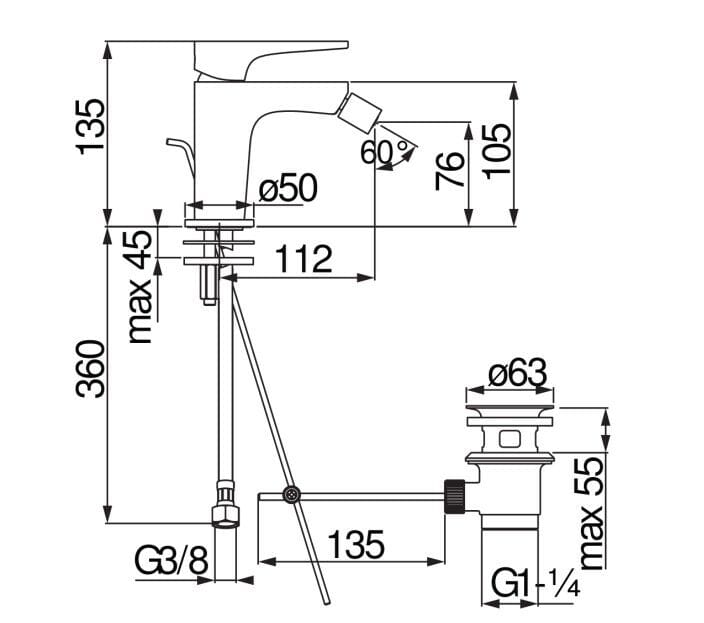 Yoyo è un miscelatore bidet monocomando da piano.