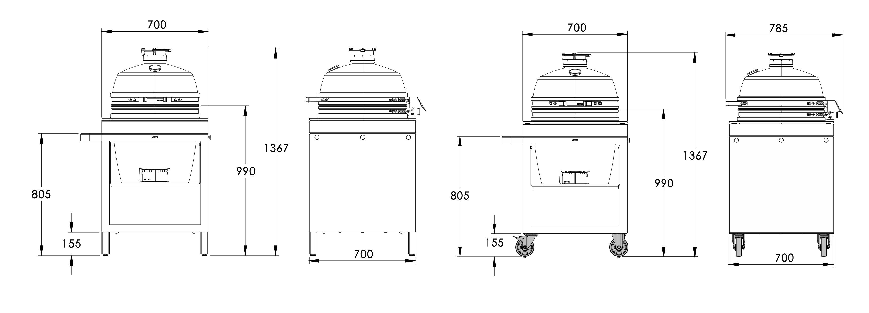 Il tavolo da kamado OFYR PRO Connect con The Bastard PRO Graphite è la scelta ideale per i cuochi all'aperto che richiedono precisione, potenza e design modulare in un'unica raffinata unità. Costruito per garantire prestazioni e versatilità, offre una base solida per un'esperienza di cottura kamado senza precedenti. Il telaio è costruito in alluminio e acciaio inox, leggero ma resistente, in grado di resistere alle intemperie e di muoversi.
