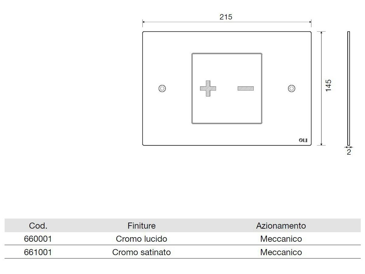 OLI INO-X 01 Placca di comando per wc in acciaio lucido