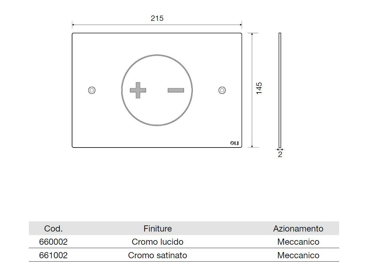 OLI INO-X 02 Placca di comando per wc in acciaio lucido