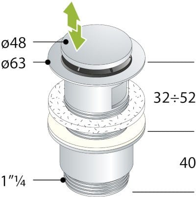 MINI CLICKER 3530.360.5 è una piletta clic-clac in ottone cromato per lavabo e bidet