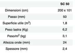 La lastra sottotegola SC50 è composta da un monostrato di colore rosso a base di fibre organiche bitumate e resinate con profilo ondulato per l’alloggio dei coppi di copertura in laterizio.