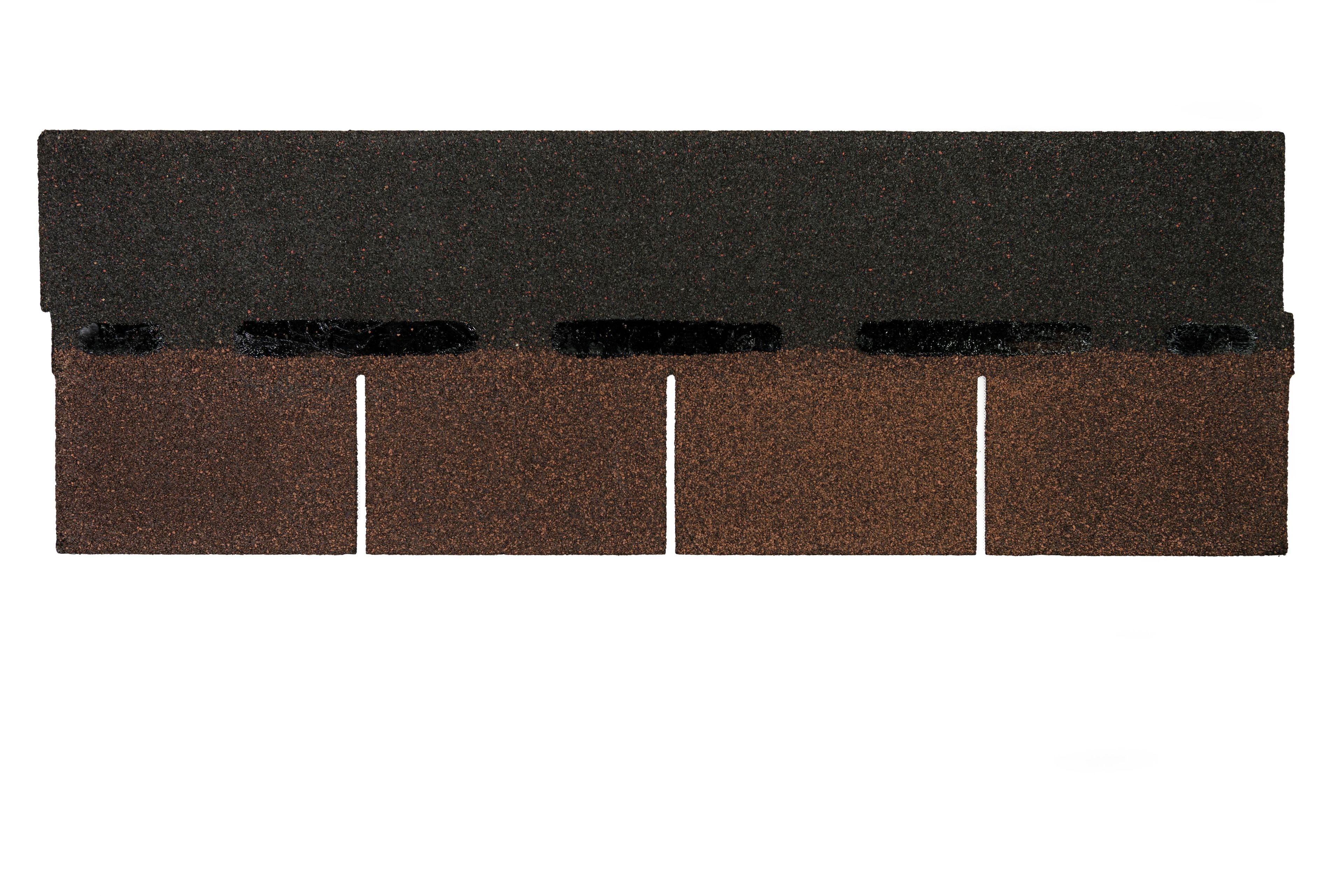 Sulla parte superiore di ogni elemento da copertura si trovano parti autoadesive bituminose che offrono la stabilità del prodotto e la resistenza agli agenti atmosferici.