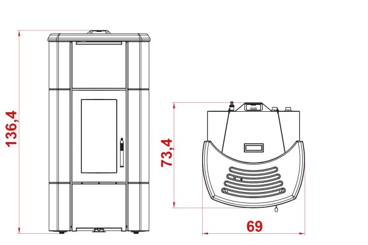 Ermione Idro è la stufa Idro con rivestimento in ceramica dalla forma stondata.