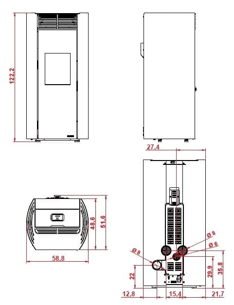 • Stufa ermetica con la possibilità di prelevare l’aria comburente direttamente dall’esterno