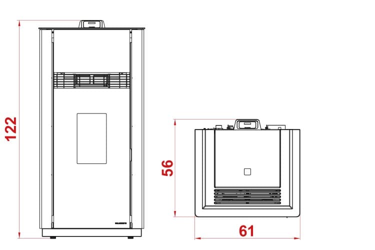 Wilma è la stufa idro ventilata con rivestimento in acciaio, top in ghisa e porta in vetro.