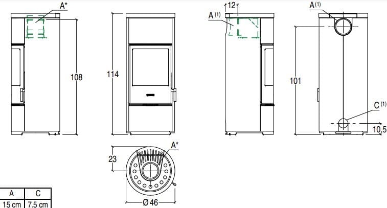 Piazzetta E924 | Stufa Stufa a legna centrale per riscaldamento aria classe A+ Linea Stufe a legna