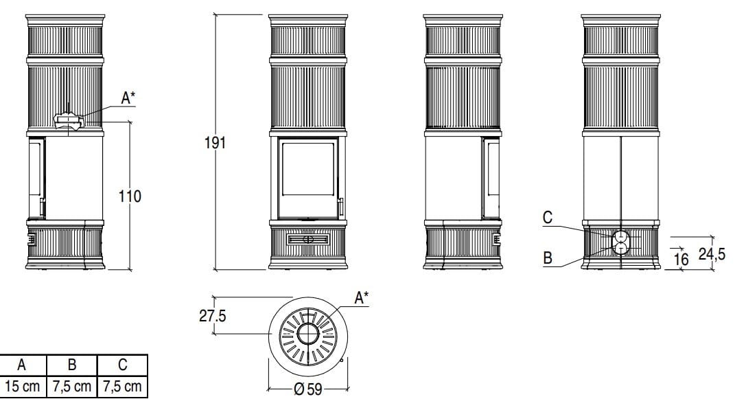 Piazzetta E929 C-H | Stufa Stufa a legna centrale per riscaldamento aria classe A+ Linea Stufe a legna