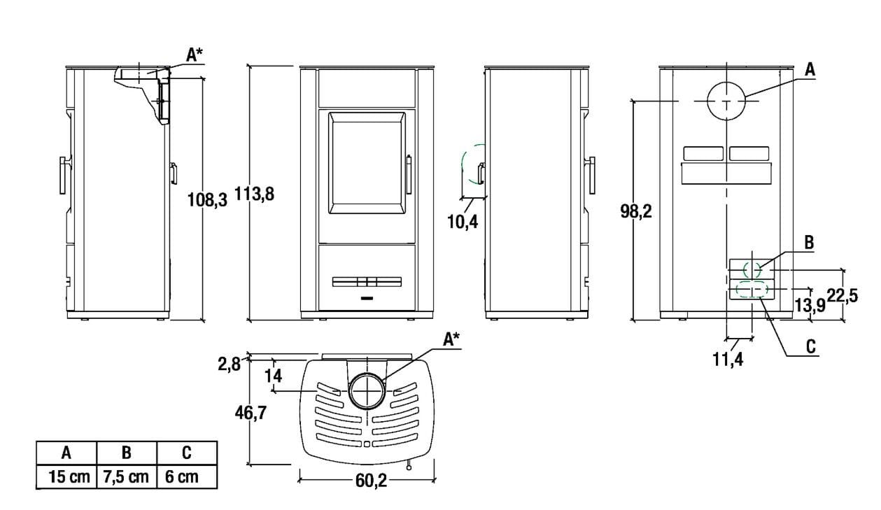 Piazzetta E928 STEEL Stufa a legna in acciaio classe A+ Linea Stufe a legna