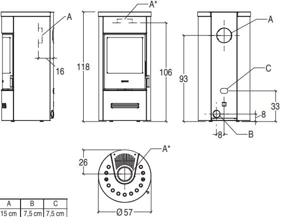 Piazzetta E129 M | Stufa Stufa a legna a parete classe A+ Linea Stufe a legna