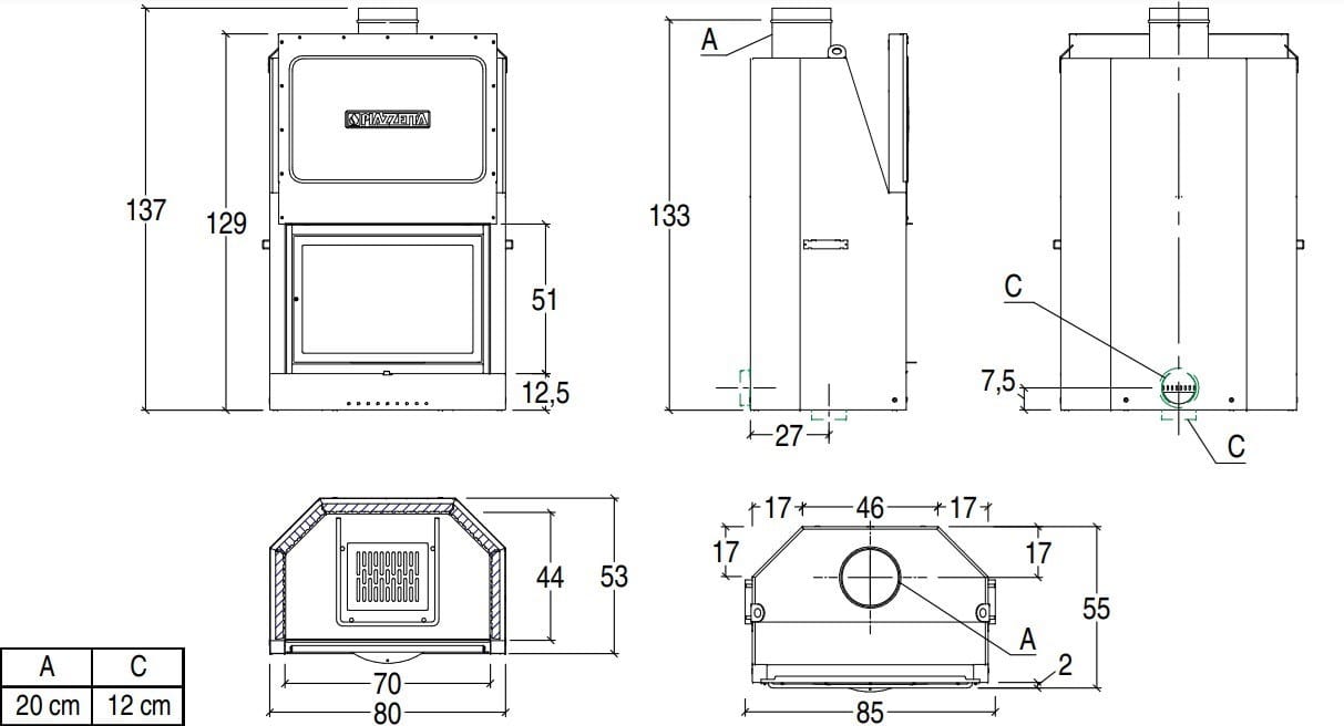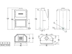 • Apertura: porta in acciaio verniciato con vetro ceramico autopulente resistente a 750°C. Apribile a saliscendi e ad anta per la pulizia