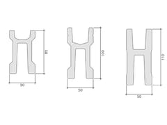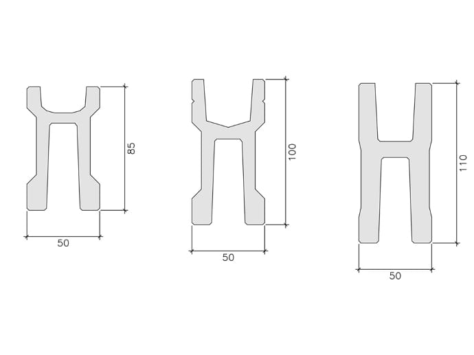 La trave canale di banchina è denominata “H” per la forma geometrica della sua sezione. Realizzata in calcestruzzo armato precompresso, è progettata per il sostegno delle travi di copertura PLANET e per la raccolta delle acque meteoriche da queste ricevute. Le acque vengono poi convogliate nei pluviali incorporati nei pilastri, per mezzo di appositi fori e raccordi posti alle due estremità di ogni trave. Ottima la resistenza al fuoco e la leggerezza strutturale. La gamma produttiva, in funzione delle luci e della quantità di acque meteoriche raccolte (anche nel caso di edifici con smaltimento delle acque esclusivamente sui lati esterni) prevede più tipologie distinguibili per le differenti altezze e per la profondità del canale. (H = 85, 100, 110 cm)