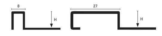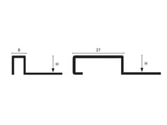 Disponibile in acciaio inox lucido AISI 304, in due diverse larghezze della parte in vista.