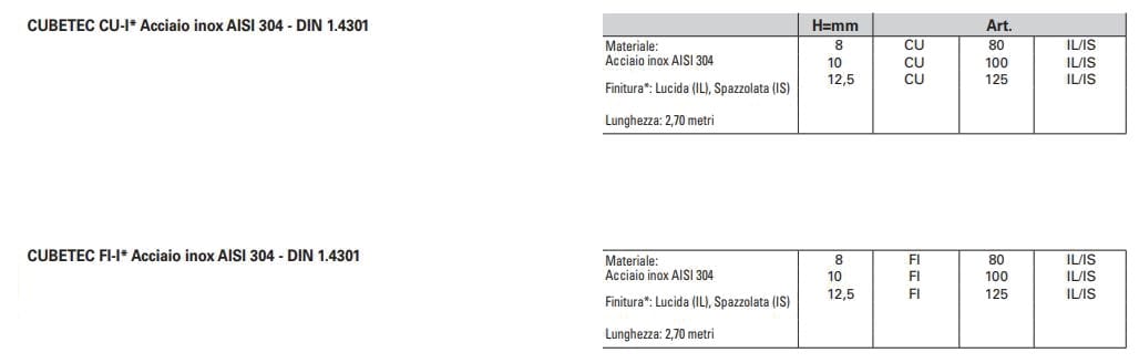 PROFILITEC CUBETEC CU-FI Profilo per pavimenti a livello Linea Cubetec