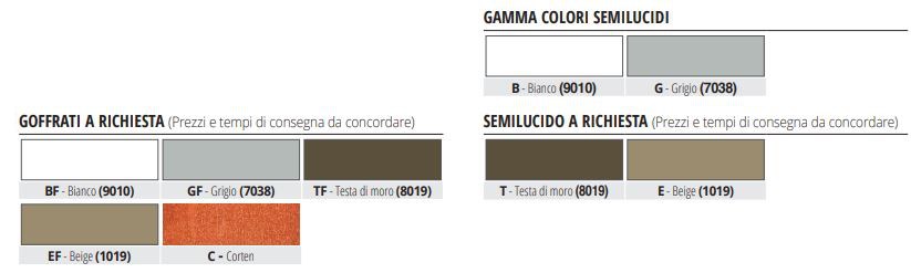 Grande attenzione all’estetica e al dettaglio, la linea PROTERRACE – negli articoli in alluminio - mette a disposizione dei clienti più esigenti anche la scelta cromatica del profilo, che spazia dal marrone scuro al beige, dal grigio al bianco.