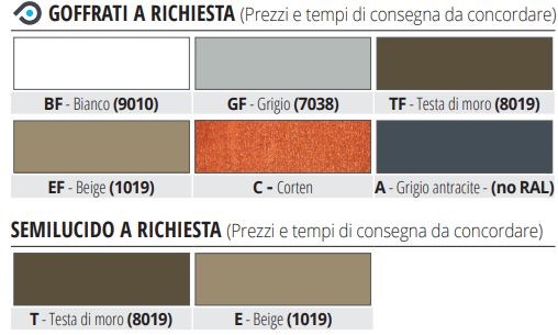 Grande attenzione all’estetica e al dettaglio, la linea PROTERRACE – negli articoli in alluminio - mette a disposizione dei clienti più esigenti anche la scelta cromatica del profilo, che spazia dal marrone scuro al beige, dal grigio al bianco.