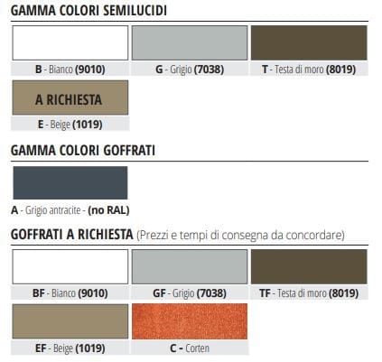 Grande attenzione all’estetica e al dettaglio, la linea PROTERRACE – negli articoli in alluminio - mette a disposizione dei clienti più esigenti anche la scelta cromatica del profilo, che spazia dal marrone scuro al beige, dal grigio al bianco.