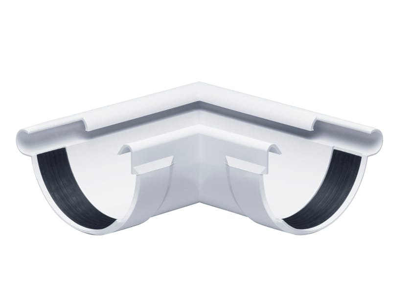 Protektor 81011 è un angolare per gronda 90° per angoli esterni in PVC resistente ai raggi UV e agli urti. Per collegare due grondaie semicircolari con un angolo di 90°.