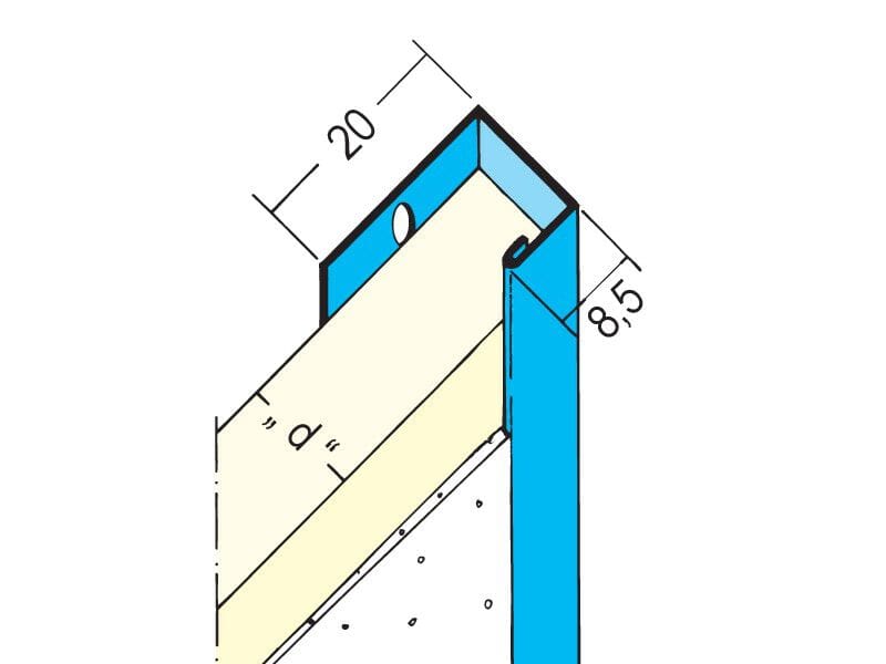 1121 è un parabordo in acciaio zincato con rivestimento bianco per pannelli in cartongesso da 12,5 mm.