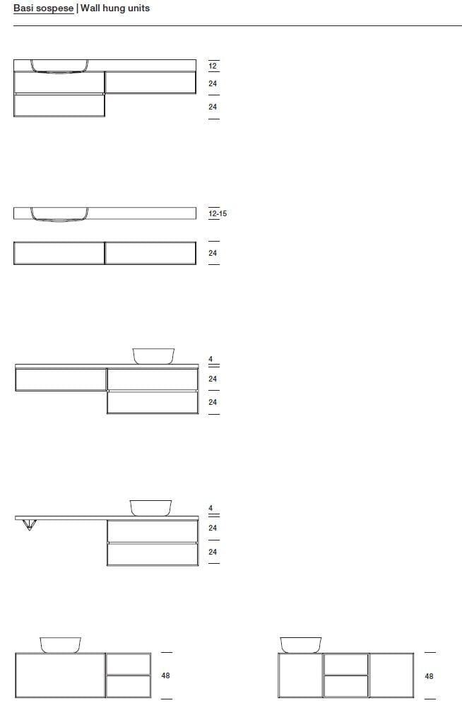 Modularità pensili: L 22cm P 22cm H 48-72-96-120cm