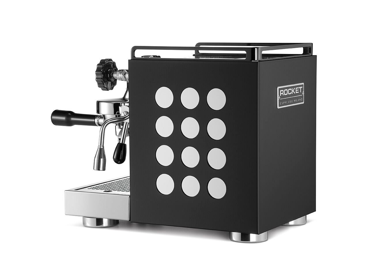 La Appartamento è una macchina da espresso compatta progettata per ambienti dove lo spazio è limitato. Gli ingegneri di Rocket hanno ottimizzato il telaio e la disposizione dei componenti interni senza compromettere la qualità e le caratteristiche che ci si aspetta da Rocket Espresso. È disponibile su ordinazione con una finitura in Acciaio Inox tradizionale o nella versione Serie Nera, che presenta un corpo in acciaio inox nero e un telaio per tazze coordinato. Entrambe le edizioni in Acciaio Inox e Serie Nera offrono l’opzione di inserti circolari laterali bianchi o in rame.