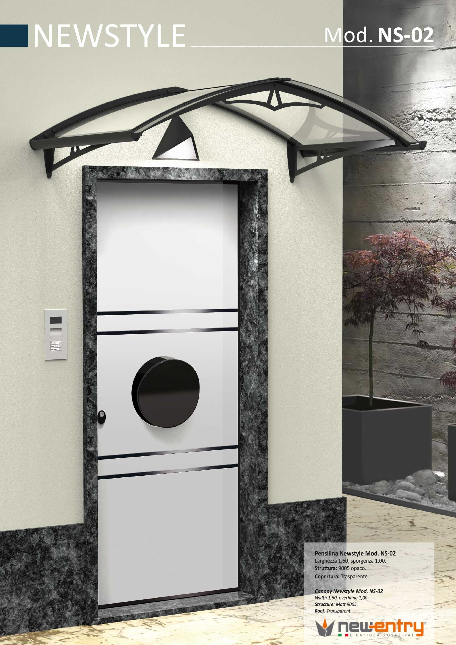 Pensilina a sbalzo con carico di 200 kg/mq (nelle condizioni di prova come certificate da ISTEDIL), disponibile nelle misure standard, composta da: