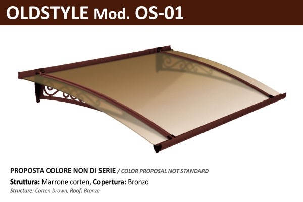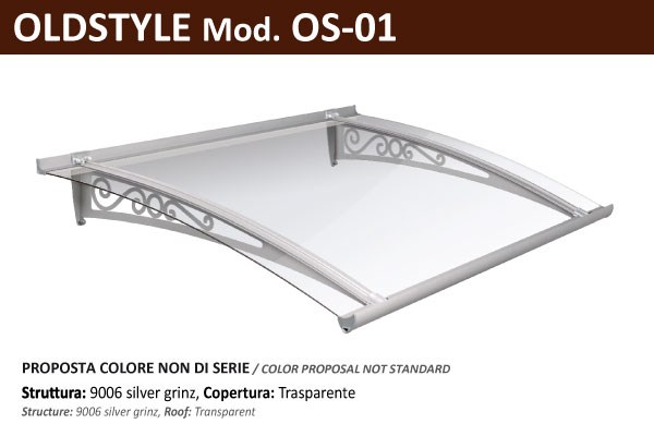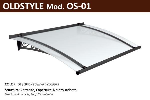 La pensilina è disponibile con sporgenze (S) da 70, 100, 130 nella versione stile Liberty, e con sporgenze da 75, 100, 125, 150 negli stili Moderno e Classico. La larghezza del modulo (LM) dipende dal carico di neve (CN) desiderato e dalla Larghezza totale (LT). La copertura in vetro acrilico antiurto, è disponibile in varie colorazioni trasparenti, satinate, e una specifica a filtro solare che può essere usata come frangisole.