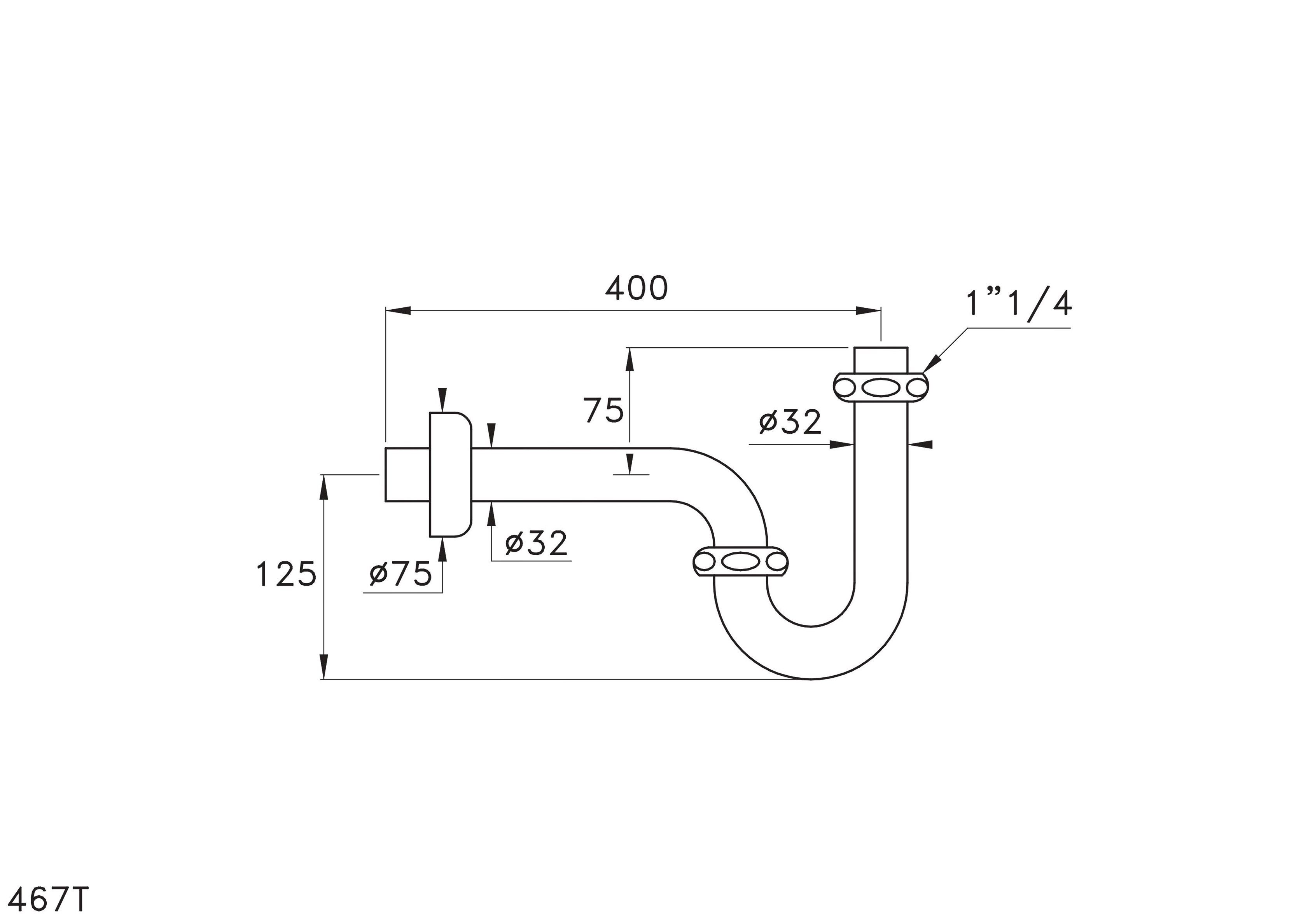 L'articolo 467T della collezione Sirius è un sifone a “P”in tubo Ø 32 mm per lavabo.