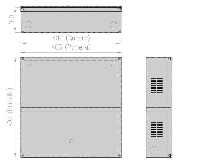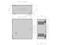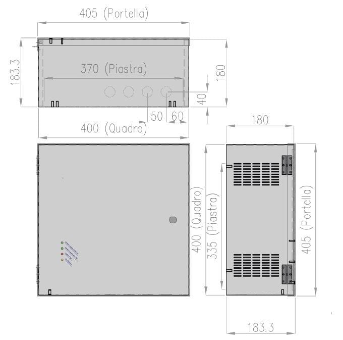 - Modulo batterie costruito con cassa autoportante in lamiera di acciaio verniciata con verniciatura a polveri RAL 7040. Quattro batterie tampone incluse.