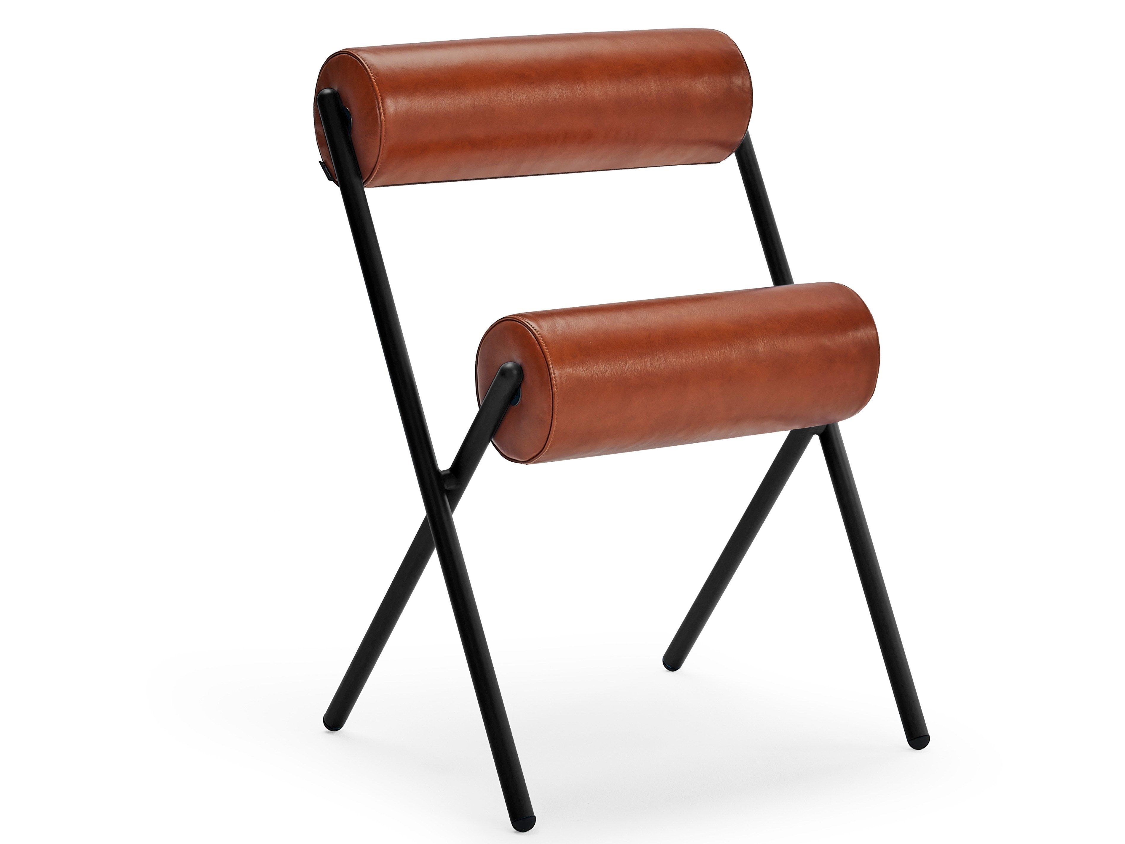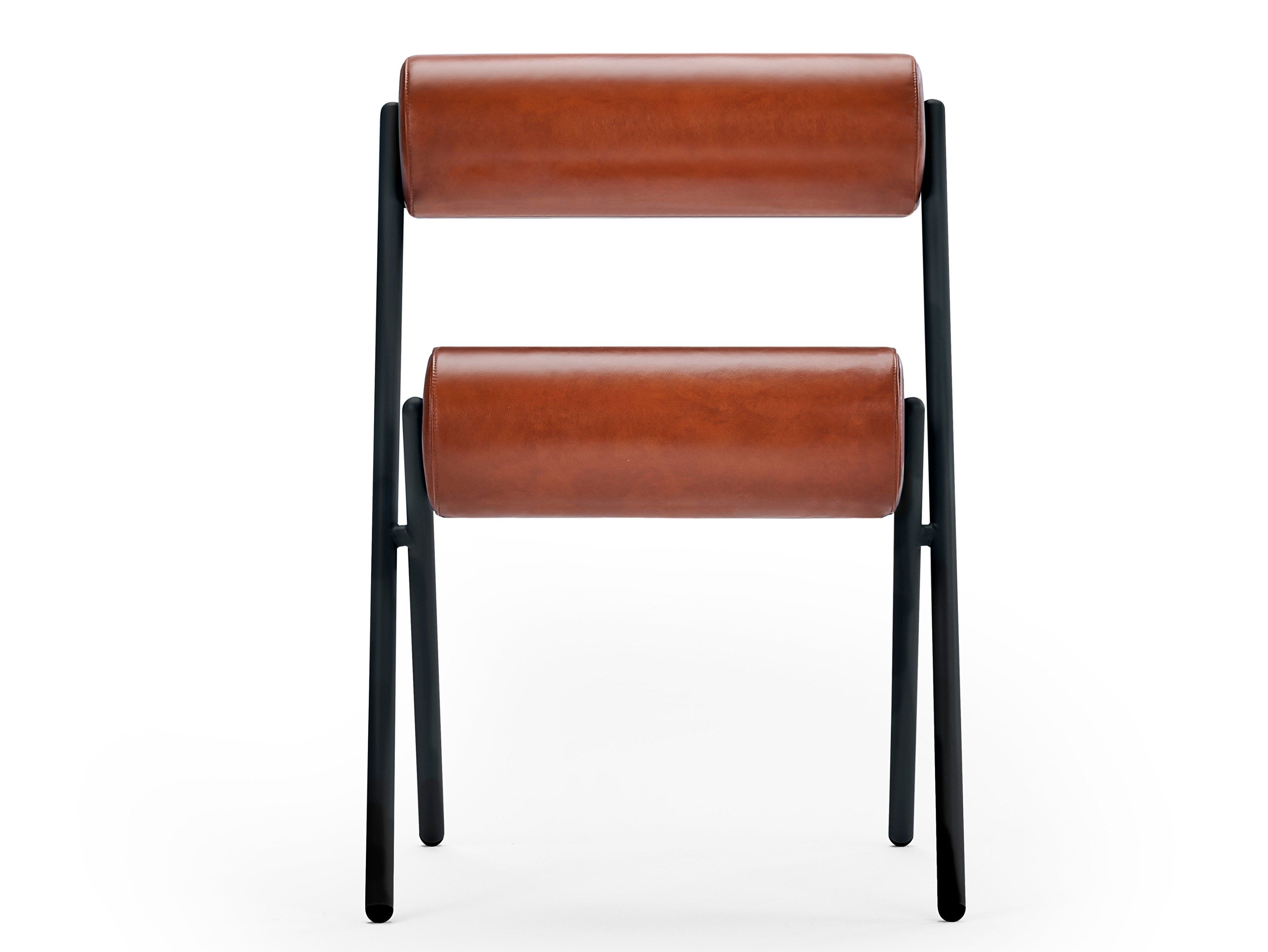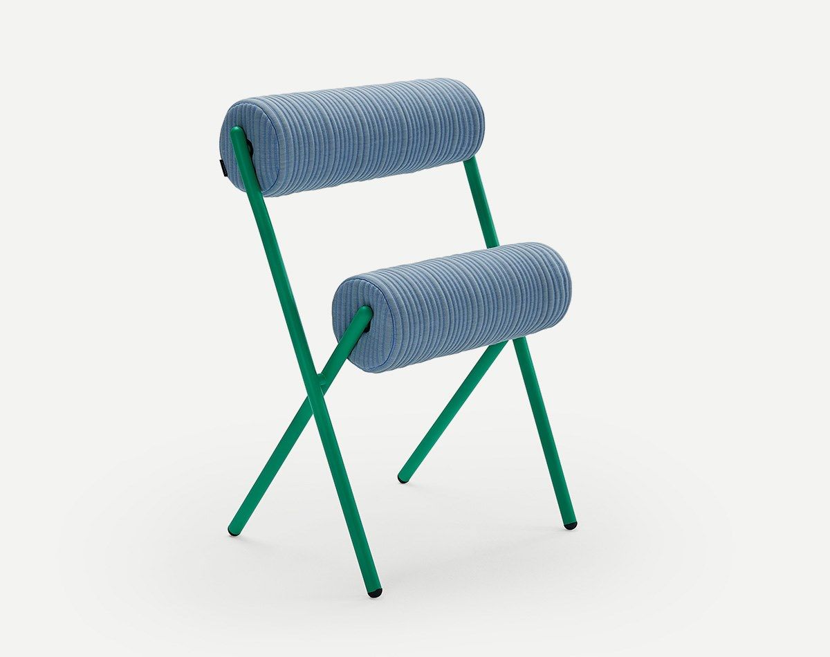 Evitando ornamenti e dettagli superflui, i creativi valenziani riducono la forma convenzionale di una sedia a due elementi puri: una struttura in acciaio e due cuscinetti cilindrici per schienale e sedile.